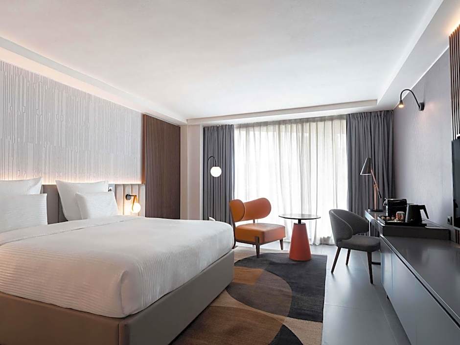 On-site perks include free Parking and free Wifi, plus an outdoor swimming pool, a Restaurant and Bar, and a 24-hour front desk. A Fitness center (free), Tennis court (free), Racquetball (free), and Sauna (free) add active options, while rooms offer air conditioning, soundproofing, and non-smoking options for comfort.